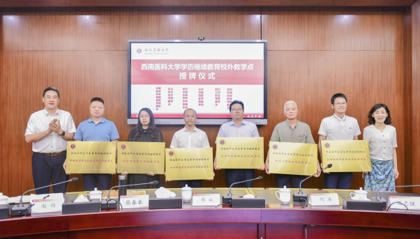 与会议期间,李祥副校长一行与会议主办单位领导和兄弟学校代表就新形势下校外教学点的规范管理、教学新要求的细化落实、教学质量的严格把控、招生宣传成效的扎实推进等议题进行了广泛而深入的讨论和交流,李祥副校长代表学校接受了西南医科大学成人本科教育校外教学点的牌匾。