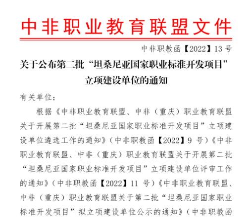 为健全和完善坦桑尼亚国家相关职业标准和职业体系,坦桑尼亚国家职业教育委员会请求引进我国优质职业教育资源以指导该国职业院校人才培养工作。9月下旬,中非职业教育联盟在全国职业院校中启动第二批“坦桑尼亚国家职业标准开发项目”立项建设单位遴选工作。在继续教育学院的积极组织下,学校医疗技术学院、护理学院与药学院结合自身的专业优势和丰富的行业合作经验,递交了“公共卫生安全检验检疫技术员”“婴幼儿托育师”和“草药种植技术员”等三个职业中的初级、中级和高级职业标准开发的项目申报。经联盟初审后我校顺利进行第二阶段的专家评审环节。继续教育学院负责人与各学院申报团队一道放弃节日假期休息,从专业基础、师资队伍、国际合作交流、同类项目经验、保障措施、经费安排等方面精心准备、反复修改汇报材料。学校领导高度重视并大力支持项目申报工作,10月9日校长王飞、副校长李祥亲自参加申请项目的线上汇报和答辩,较好展示了我校的专业水平和申报实力。10月19日,中非职业教育联盟确定并公布了第二批“坦桑尼亚国家职业标准开发项目”立项建设单位名单,我校从全国参与申报的近130所职业院校中脱颖而出,共获得三个职业工种的7个职业标准项目的开发与制定权,成为获批项目最多的院校之一。