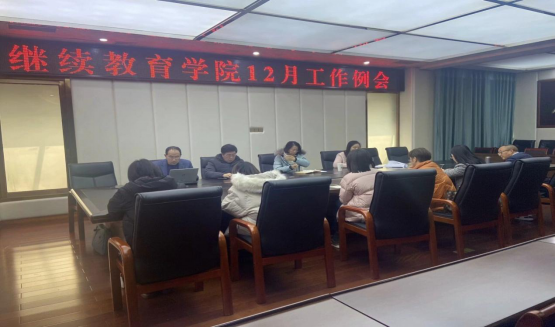 2024年12月10日下午,继续教育学院全体工作人员在学校南园综合楼3楼新会议室召开学院2024年12月工作例会。会议由赵玲副院长主持,学校党委委员、分管学院工作的副校长肖玲同志出席工作例会并作重要讲话。