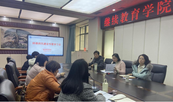 12月10日下午,继续教育学院根据学习工作方案在南校区综合楼新会议室安排了继续教育学院全体同志参加的师德师风建设线下专题学习会议。