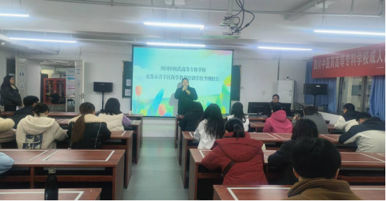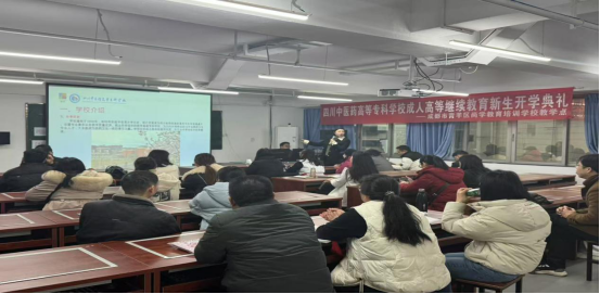 继续教育学院成人教育方面负责人在乐山市医药科技高级技工学校开班典礼上讲话、解读学籍及教学等事宜