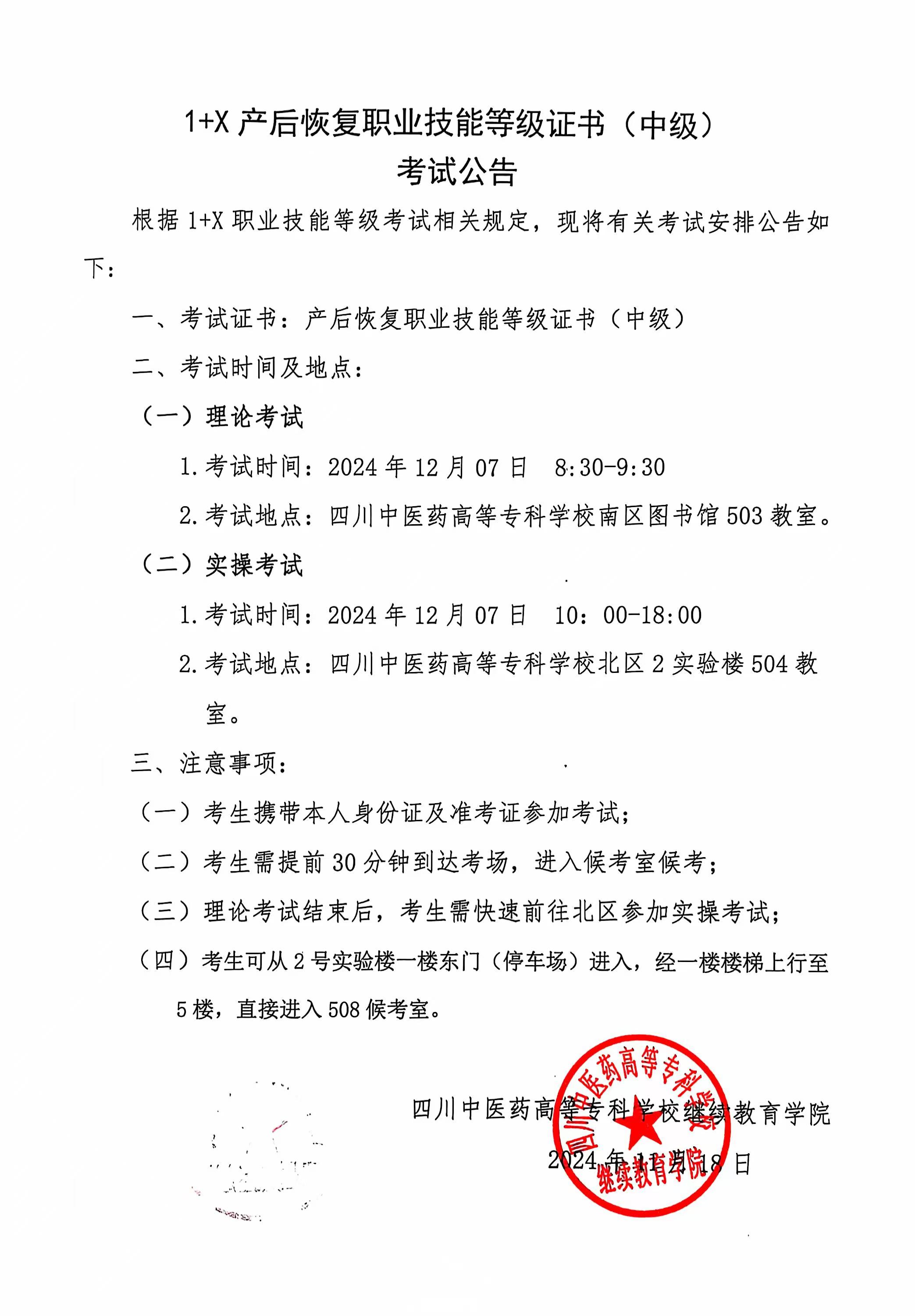 1+X产后恢复职业技能等级证书(中级)考试公告